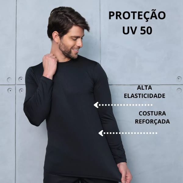A Camiseta Térmica Segunda Pele Proteção UV Extreme Premium da marca MODAS LUALL é a escolha ideal para os amantes de atividades ao ar livre. Composta por uma mistura de poliéster e elastano, esta camiseta oferece conforto e flexibilidade, permitindo liberdade de movimento durante caminhadas, ciclismo, corridas e muito mais.